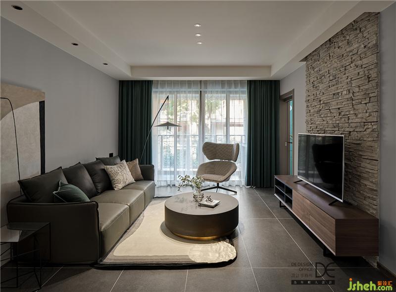 深灰色仿古磚配上淺灰色的乳膠漆,摒棄復(fù)雜的墻面造型,斑駁的電視墻在燈光的照射下和細(xì)膩的乳膠漆形成強(qiáng)烈對(duì)比,讓空間更顯層次感;簡(jiǎn)單清爽的硬裝打底,配上坐感舒適的綠灰色皮沙發(fā),造型簡(jiǎn)單的深咖色躺椅搭配黑白紋路單椅,讓客廳揚(yáng)起一股清爽、寧?kù)o、自然之風(fēng)。