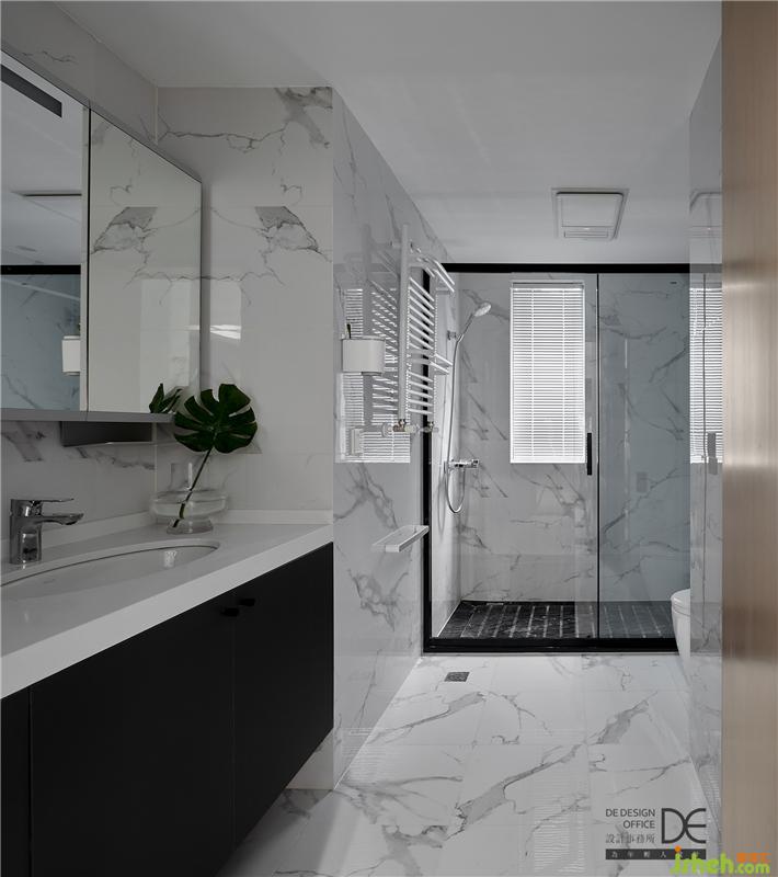 衛(wèi)生間地面和墻面都是以白色磚,保證空間干凈透亮。為了和衣帽間空間協(xié)調(diào),只是保留了馬桶和洗漱盆(空間的取舍有時(shí)候就體現(xiàn)在這些地方)。