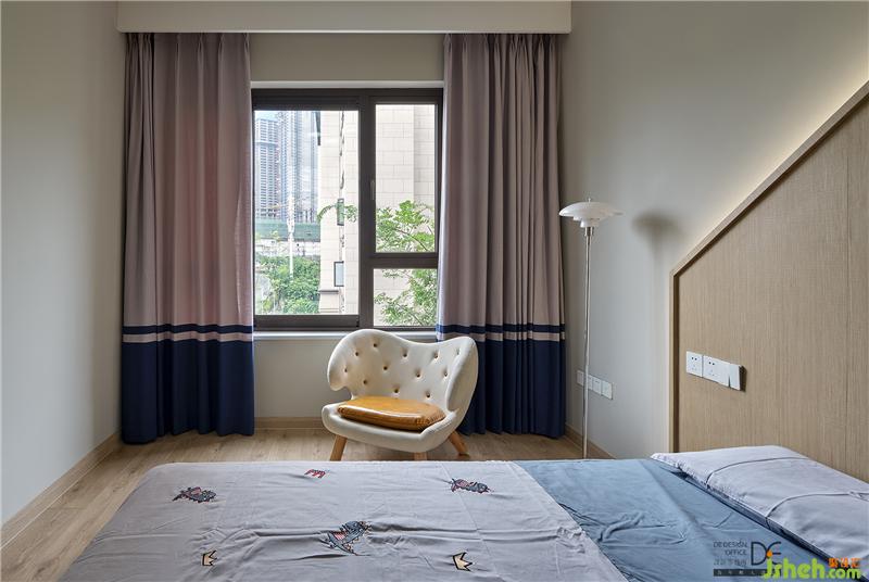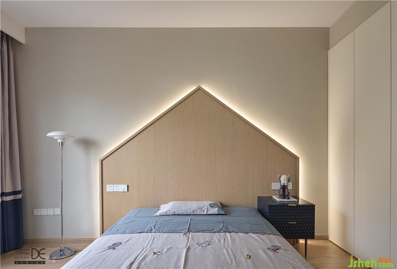 兒童房,房子形狀的床頭,蛋黃小沙發(fā)椅,白色蘑菇落地?zé)簦瑢⑼げ剡M(jìn)了細(xì)節(jié)里。