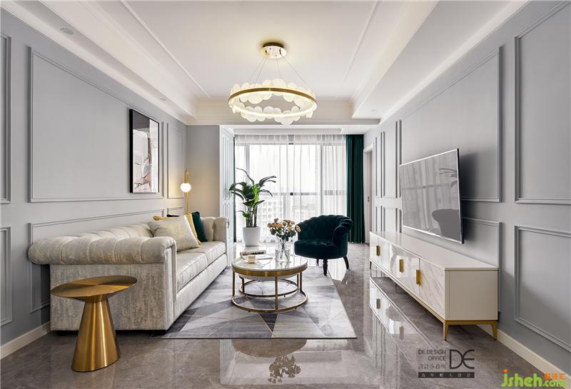 選用淺色系作為客廳的主色調(diào),融合金屬達(dá)到輕奢感。整體配色給人清新明亮的感覺(jué),少許深色運(yùn)用不顯壓抑反而更為吸睛。