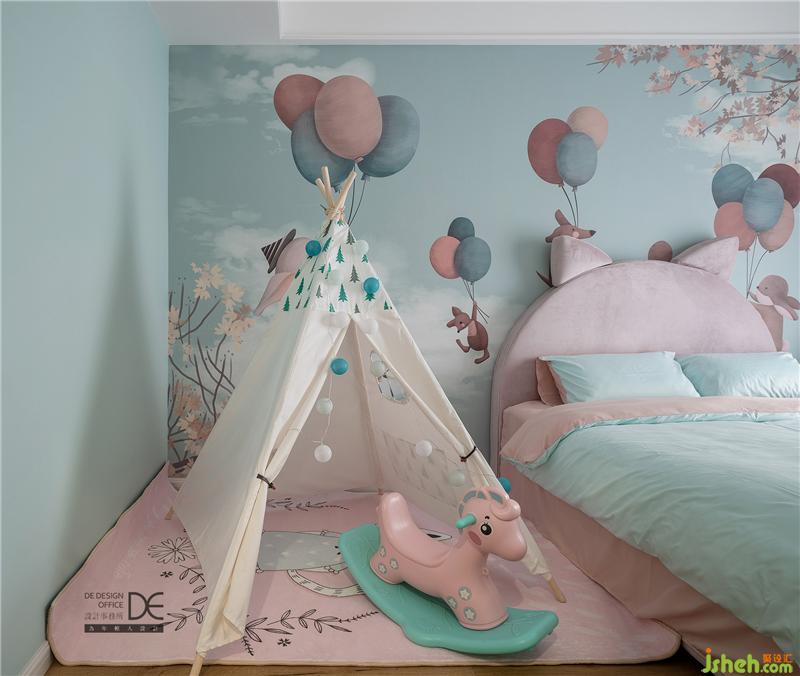 每一個(gè)女孩心里都藏有一個(gè)“公主夢(mèng)”。本期的兒童房便圍繞著“童心與童話”,為業(yè)主家的小妹妹搭建一個(gè)夢(mèng)想中的“小城堡”。童趣十足的墻紙,貓耳朵床頭,粉色小木馬,藏著對(duì)童年最好的期盼。