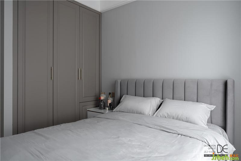 父母房設(shè)在一樓,出門即是衛(wèi)生間,最大程度方便老年人日?;顒?dòng),減少樓上樓下來回跑動(dòng)的次數(shù)。房間整體色系采用了低調(diào)沉穩(wěn)的灰色系,乍一看,自有一股舒適寧靜的感覺。