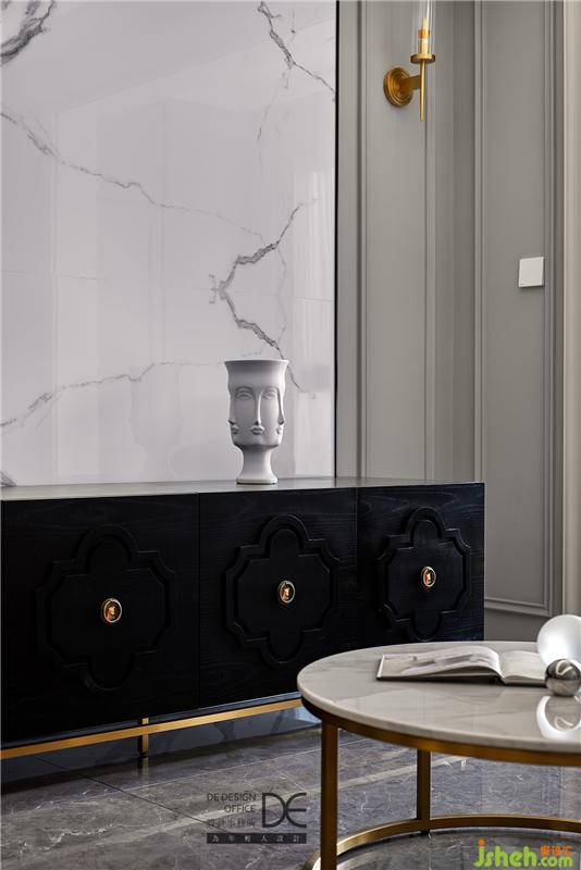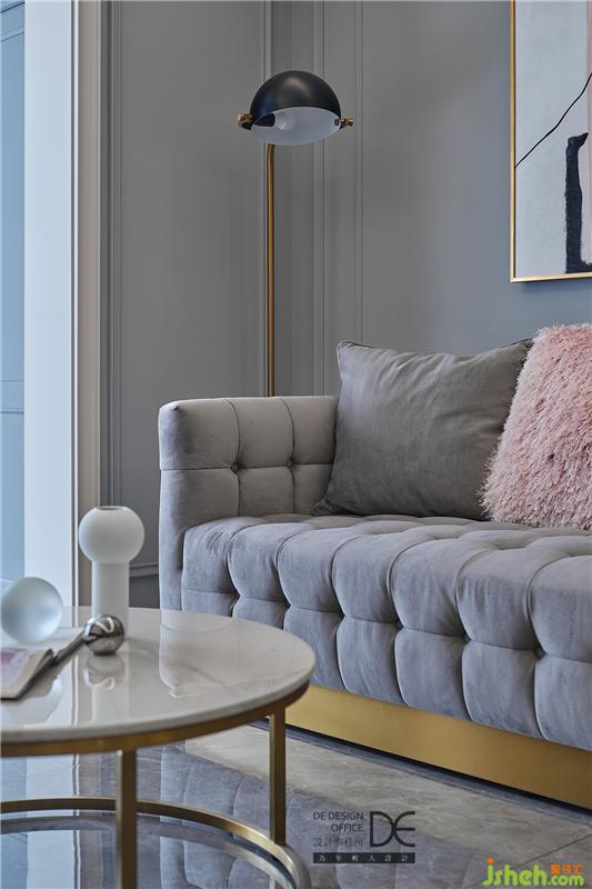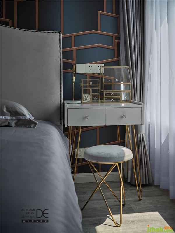 藍色、灰色、金色,將輕奢感精妙地植入進空間,從而側面表現(xiàn)業(yè)主對輕奢的喜好。