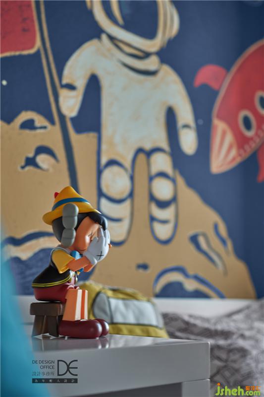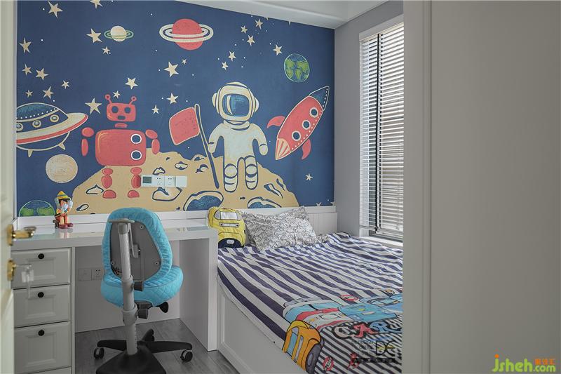 都說妹妹要富養(yǎng),從床到書桌,妹妹房間的東西在造價上都比哥哥的房間要多出很多。原本狹窄的空間通過壁畫的使用,讓空間從視覺上變得更為寬敞。