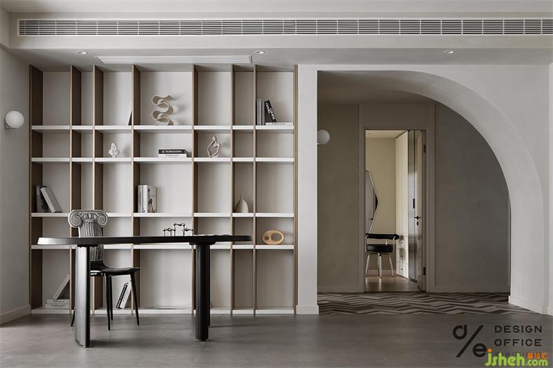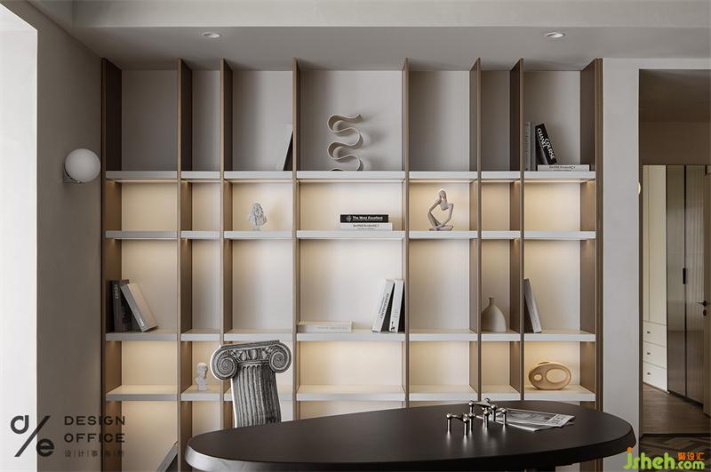 家居設(shè)計(jì)采用更加明亮的光照。定制的書柜,隱形的開關(guān)設(shè)計(jì),嵌入式燈帶,給空間融入了更多的層次,體現(xiàn)出空間的豐富感和大氣感。