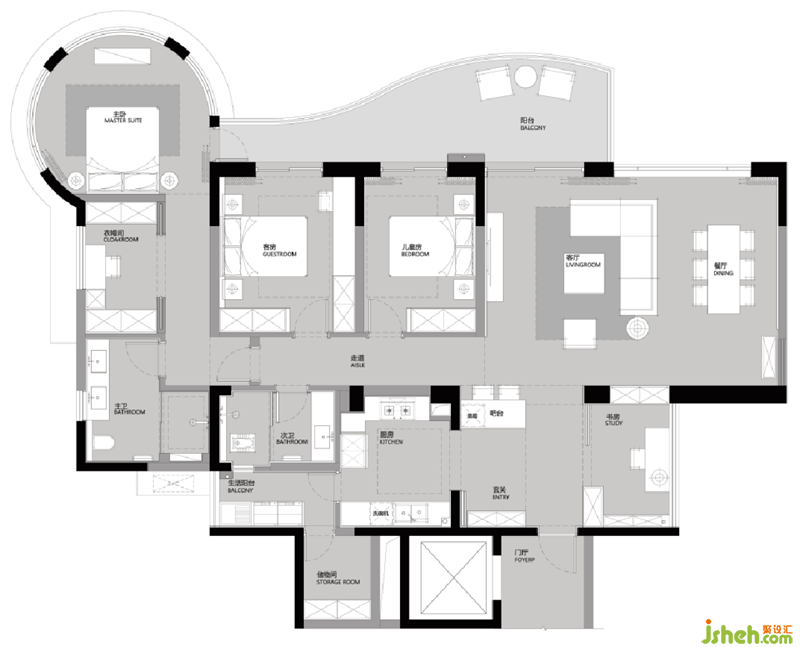 從全屋的功能收納,還有入戶玄關到符合人體工程學設計的客廳家具,從廣闊明亮的餐廚區(qū)到淋浴和浴缸相結合的衛(wèi)浴布局,我希望業(yè)主在這個空間生活的每一天都能怡然自得。