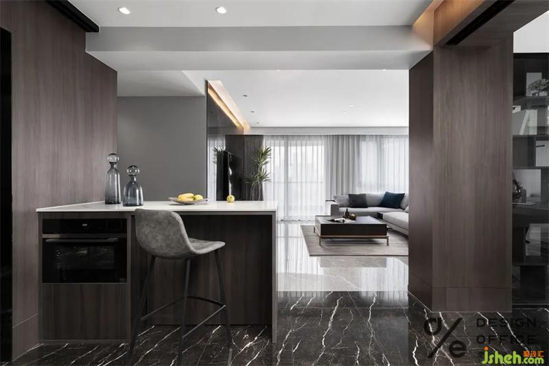 The open kitchen is adjacent to the dining room, and the designer outlines the modern and exquisite life scene with simple layout.