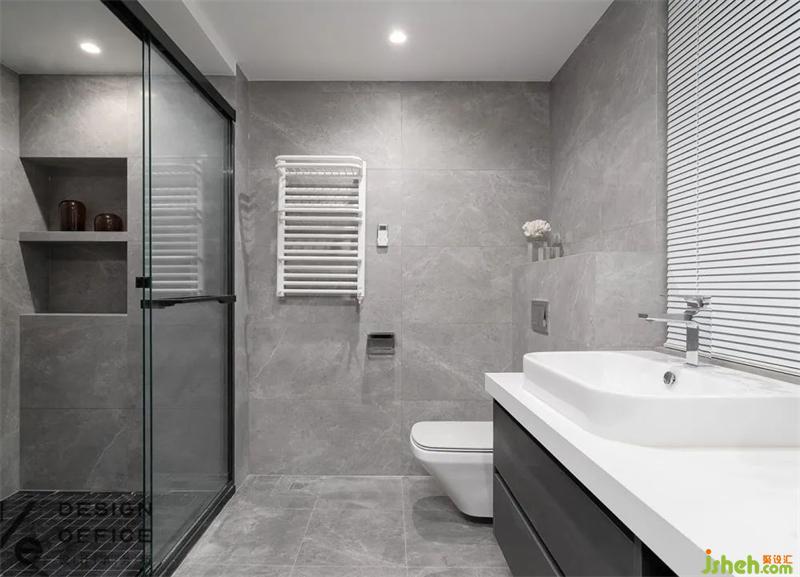 主衛(wèi)在品質(zhì)舒適上面花了很大心思,滿足了業(yè)主提出的雙臺(tái)面盆的要求,同時(shí)留出了超大的淋浴區(qū),做好干濕分離。
