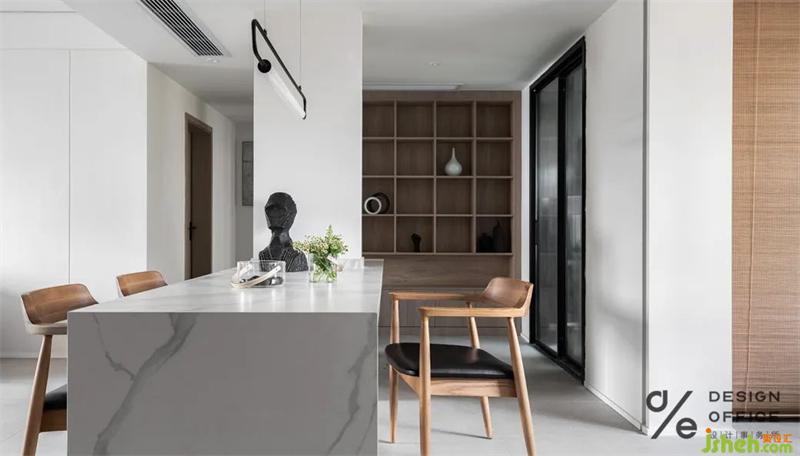 客餐廚連為一體,減少墻壁分隔帶來的封閉感,還能大大縮短家居動線,為業(yè)主創(chuàng)造出一個慵懶從容的用餐空間。