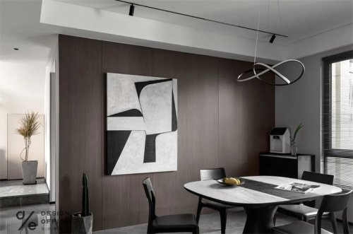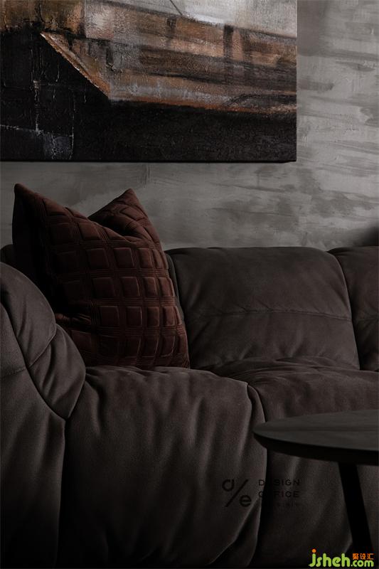 客廳似劇場(chǎng),黑與灰的基底使本就寬敞的待客空間更顯內(nèi)涵品味。沙發(fā)姿態(tài)低矮,坐與臥都慵懶,碳素圓幾加進(jìn)兩分柔和,拿與取更自在。