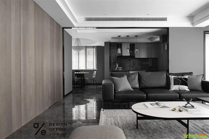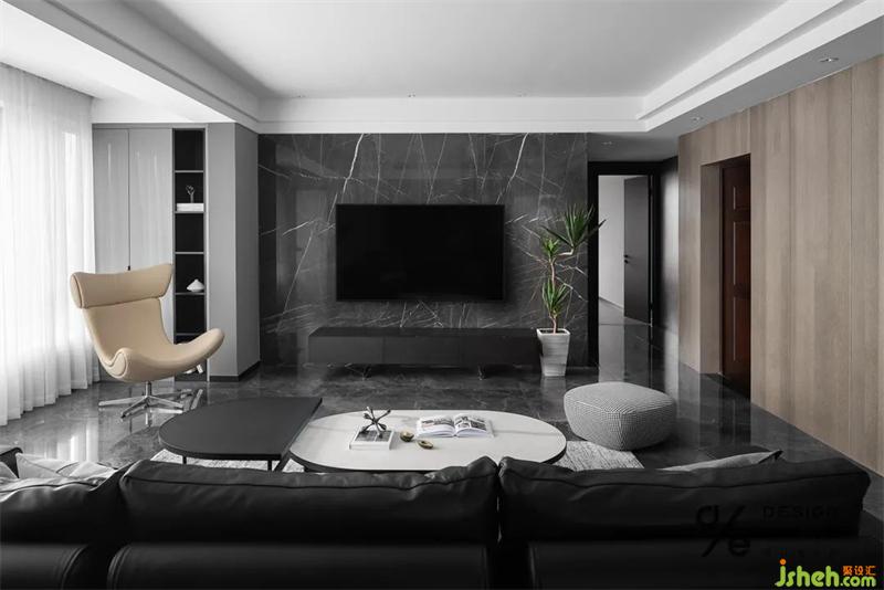 客廳采用無主燈照明,見光不見燈的設(shè)計(jì)是對于人最舒適的顧及;黑白的主色,是干凈純粹的色調(diào);沒有過多的裝飾,只是將木色和灰色穿插在空間中。