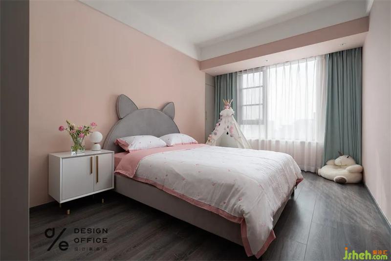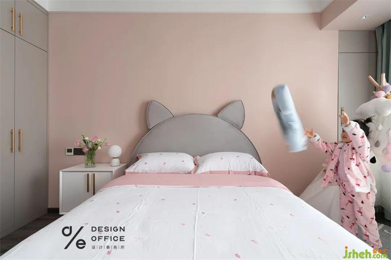 整個(gè)空間依然以粉為主色彩元素,將粉與灰的搭配做到了極致。豐富、自由、快樂(lè)、有趣,是孩子的童年精心搭配的軟裝,巧妙合理的布局讓空間擁有充分的安全感。