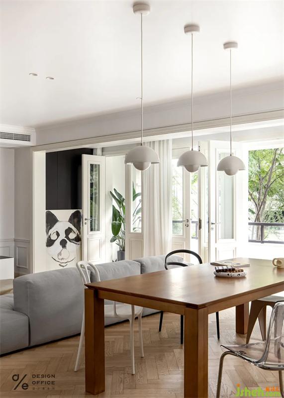 本案是一套建筑面積為170m2的三居室,業(yè)主是兩位90后,養(yǎng)了一只可愛的法斗;他們喜歡化繁為簡(jiǎn),追求生活的品質(zhì);他們認(rèn)為自由隨性才應(yīng)該是家的標(biāo)簽。這與The Bauhaus中“少即是多”的理念一樣,提倡在設(shè)計(jì)中做“減法處理”。