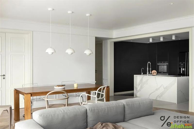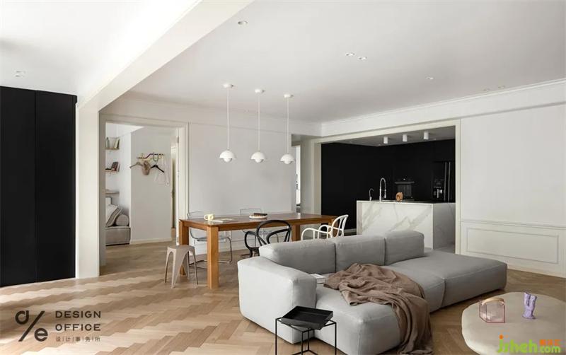 本案中,設(shè)計(jì)師摒棄一些傳統(tǒng)家裝上的“束縛”,強(qiáng)調(diào)生活的純粹。去掉多余的色系,硬裝都采用奶油白和極少數(shù)黑色,給軟裝留足了空間加入更多的生活色彩。大面積留白,讓實(shí)用主義與審美價(jià)值完美融合。