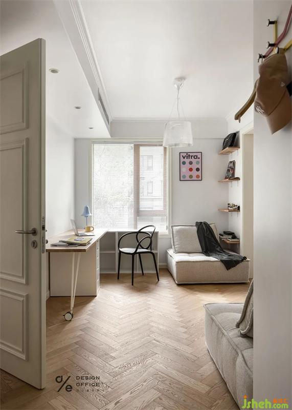 角落為狗狗安置的小窩,無不體現(xiàn)出對它的寵愛,即使它愛打呼,愛調(diào)皮搗蛋。但是有它的日子,除了快樂,就沒別的了。床頭業(yè)主的戀愛合照,是臥室唯一的裝飾品,簡單卻又不可替代,屬于兩個人的私密空間,合適舒服才是最重要的,因為只有熱愛生活的人才會記錄生活的點滴。
