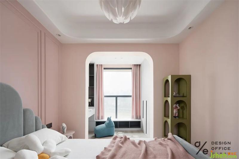 不同色值粉色的運(yùn)用,讓空間色調(diào)在簡靈中透出豐富度,為空間帶來可愛、靈動的氣息,柔和的座椅軟包親切溫馨,打破高級灰的傳統(tǒng)印象。墨綠色柜體,與小尺度空間完美契合。