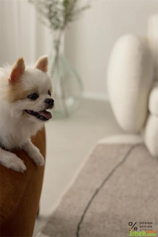 整個(gè)軟裝色彩搭配,餐椅和單椅同色系的選擇,在奶色系上加了一些撞色,是整個(gè)空間統(tǒng)一而又有樂(lè)趣。簡(jiǎn)約而又不失趣味,增加了空間視覺(jué)靈動(dòng)感。