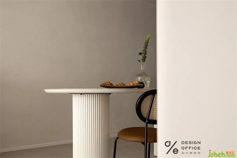 圓潤(rùn)的餐桌傳達(dá)出相聚的指示,透過(guò)窗簾光影恣意流轉(zhuǎn);這里不僅是一家人的三餐之所,更是溫柔的相聚時(shí)光。
