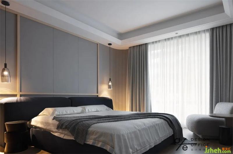 灰色暈染出舒適安逸的氛圍,搭配品質(zhì)家具,營(yíng)造休息空間的靜謐感。造型簡(jiǎn)單的床頭背景,簡(jiǎn)約自然,提升空間質(zhì)感。晝夜的交替,自然光與燈光的更迭,整個(gè)空間呈現(xiàn)出一種不同的魅力。