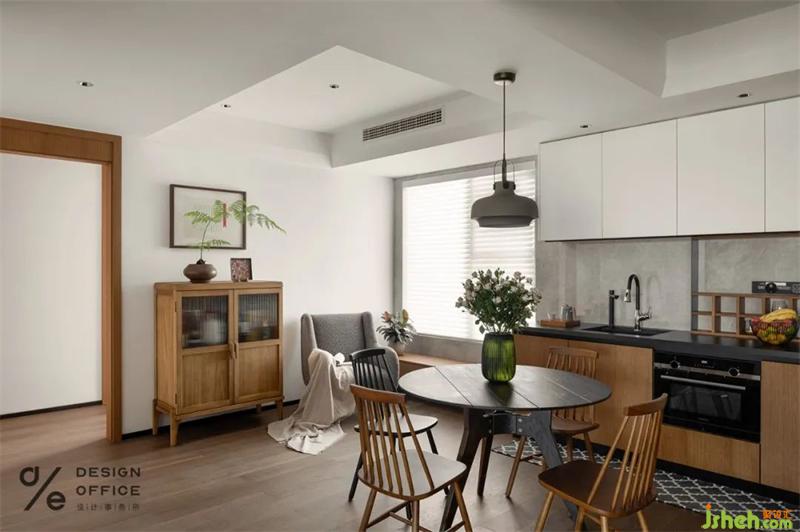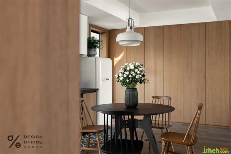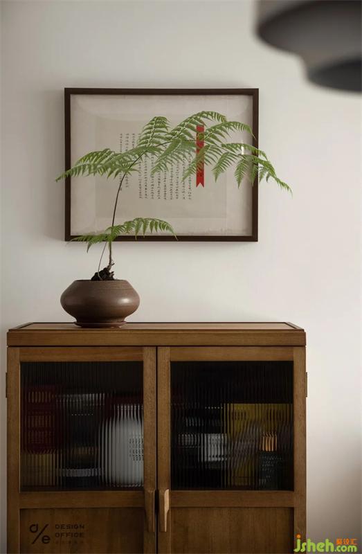 餐廳大量的木質(zhì)元素,吸引著主要通道的目光,聚焦屬于餐桌上的精致美味,餐邊柜上擺上綠植,自然的氣息偷偷融進(jìn)生活。