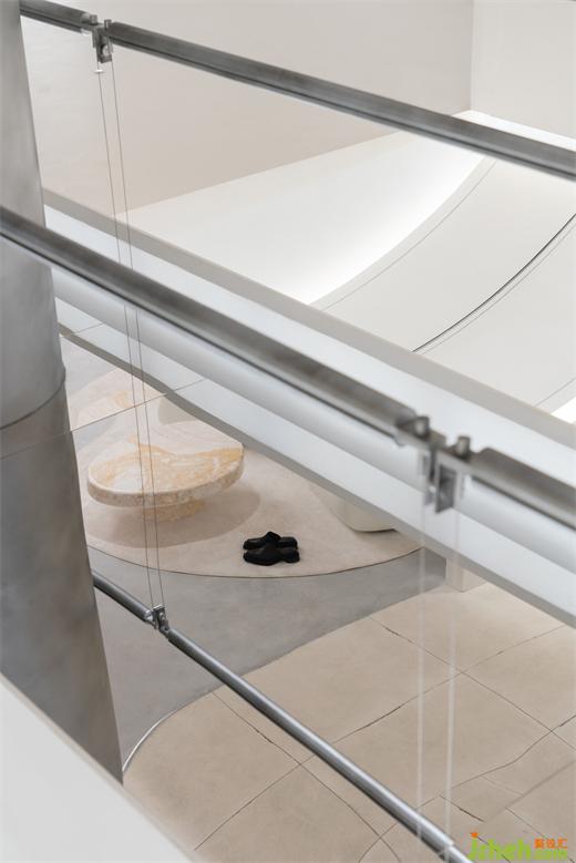 隨著步伐的移動(dòng),階梯上金屬凳的邊緣內(nèi)折,是對(duì)“紙樣”輕薄質(zhì)感的轉(zhuǎn)譯;