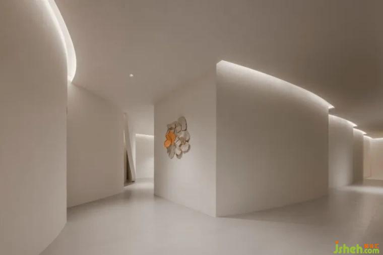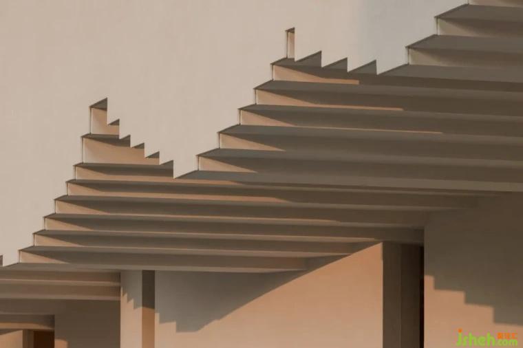 此外,Simple Art美術(shù)館鄰近于南淝河,該河流具有豐富的文化記憶與歷史價(jià)值,也被當(dāng)?shù)厥忻穹Q為合肥的母親河,特別是在平日夕陽照射所產(chǎn)生的水波浮動(dòng)效果,展現(xiàn)其河道受自然環(huán)境沖刷變化的千年歷史。因此,Hung And Songkittipakdee(HAS)將南淝河特有的水波,巧妙的轉(zhuǎn)換成空間感知,透過曲面的墻體與起伏的頂面,在午后夕陽光線滲透進(jìn)入室內(nèi)時(shí),頂面有如還原南淝河特有的水波浮動(dòng),其光線倒映著內(nèi)外上下整體空間,建筑本身猶如一幅抽象般的藝術(shù)畫作。該建筑不僅只是一個(gè)提供藝術(shù)展覽與文化交流的美術(shù)館,建筑師Jenchieh Hung與Kulthida Songkittipakdee致力透過空間,激發(fā)當(dāng)?shù)厝藢?duì)于美的好奇與渴望,并在鋼筋混凝土的城市中,帶來一處具有跨時(shí)代精神,連接傳統(tǒng)與當(dāng)代的文化建筑。