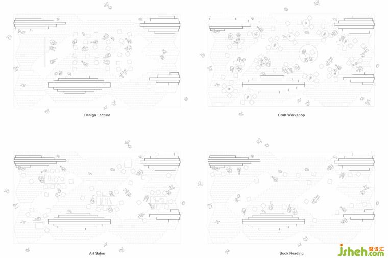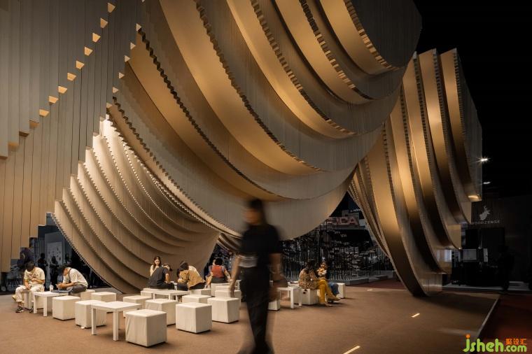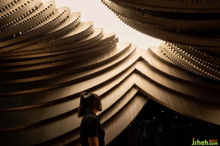 基于這樣的前提,HAS Design and Research建筑事務(wù)所提出了一個嶄新的設(shè)計,在繁忙且高密度的展會中,創(chuàng)造一處具有自然印象的山谷洞穴。這個泰國鋁石窟文創(chuàng)場不僅重現(xiàn)過去泰國人仰賴自然山水所提供住所與生活場景,更反映當今曼谷人均綠色開放空間僅有6.99平方米,遠低于世界衛(wèi)生組織的9平方米。在日常時段,向上抬升的建筑,制造底層架空的開放空間,一方面創(chuàng)造更多“灰空間”吸引大眾并延伸室內(nèi)外的環(huán)境,另一方面則對傳統(tǒng)泰式吊腳樓多功能“Tai toon”的呼應(yīng)。到了特殊時刻,有如山谷的天光照亮整個空間,不僅提供教育、學(xué)習、論壇等功能,更讓空間產(chǎn)生一股“非日常性”的儀式感,從而賦予身心靈前所未有的感知體驗。