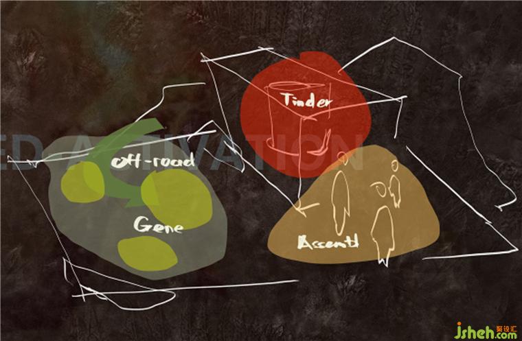 概念描述了一群在城市中生活的越野基因探索者們經(jīng)過探索,相聚在“集結(jié)地”,重燃內(nèi)心火種——重燃對(duì)自然與越野的熱望,召集更多同頻的探索者一起再次出發(fā),去探索沒有道路的地方和無窮壯麗的自然。