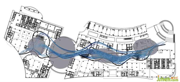 曲折靈動(dòng)的線條交織出如同蜿蜒河水般的詩意,空間中的一步一景都是故事。