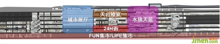 兩地塊連廊空間植入生態(tài)溫室的主題,創(chuàng)造自然環(huán)境與商業(yè)結(jié)合,購物廣場設(shè)計(jì)選用自然水元素呼應(yīng)運(yùn)河,打造城市展廳,將綠化空間串聯(lián),延伸至生態(tài)水岸,商業(yè)面跳動(dòng)的綠色植栽更增加項(xiàng)目生態(tài)感。