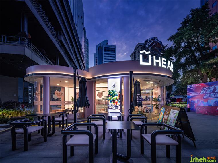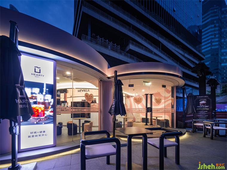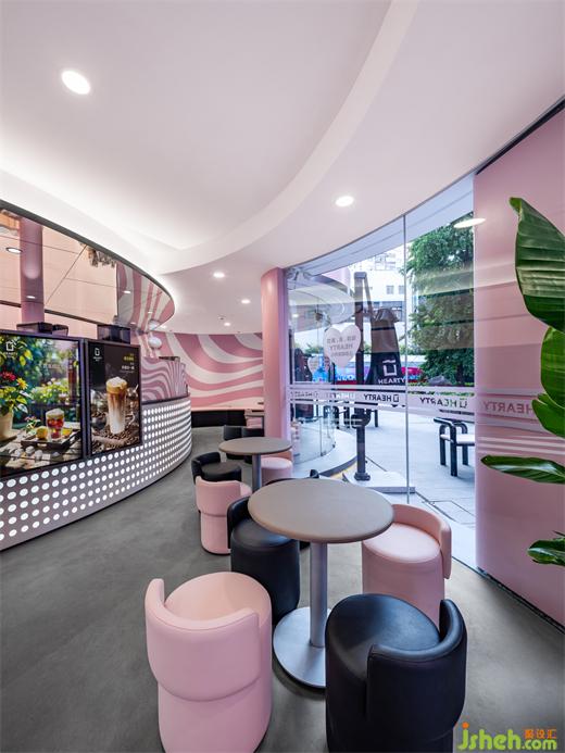 咖啡廳設(shè)計(jì)室內(nèi)圍繞弧形玻璃墻面放置的主題粉色玻璃鋼座椅和單體小圓凳,室外主題粉色網(wǎng)紅椅和深色網(wǎng)紅椅,搭配遮陽(yáng)傘,使商業(yè)街游人能夠得到小憩空間,保證空間整體的連續(xù)性,巧妙的為顧客帶來(lái)一個(gè)既靈動(dòng)又功能豐富的咖啡體驗(yàn)場(chǎng)所。