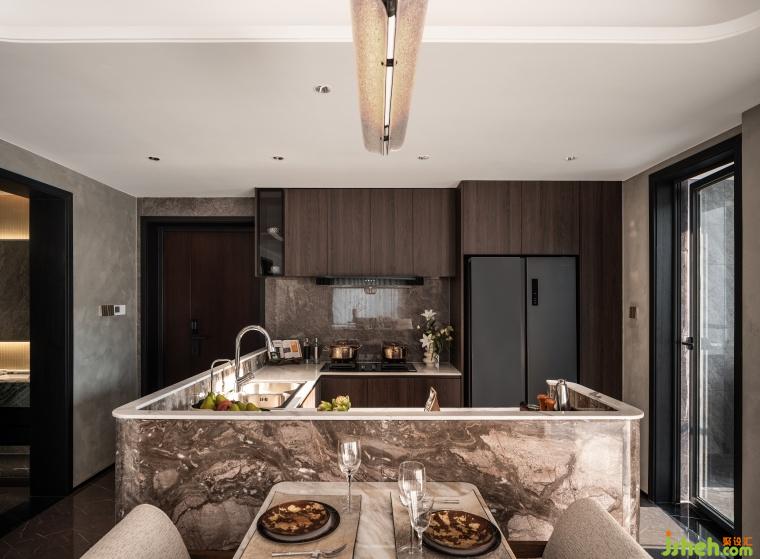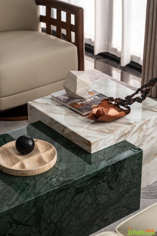 大地色自然風(fēng)格作為疊翠的標(biāo)志性設(shè)計(jì),深淺格調(diào)與木質(zhì)、金屬、石材等元素的運(yùn)用,最終營(yíng)造了整體沉穩(wěn)的暖意和靜雅的氣質(zhì),不浮于表面,刻寫在客廳空間場(chǎng)景的生動(dòng)細(xì)節(jié)之中.