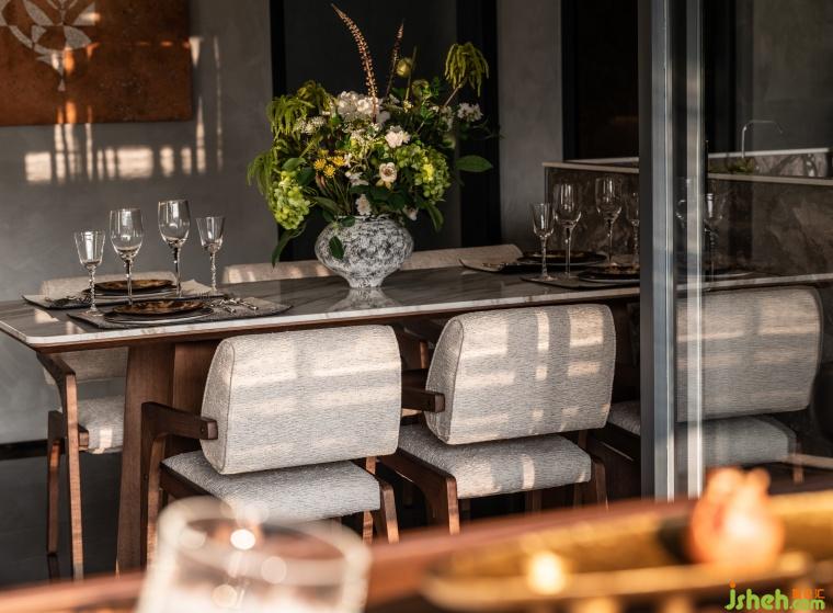 清風(fēng)云色淡然,暖光在客餐廳區(qū)間泛起漣漪,開放式的用餐布局,令彼此的界限消弭不在,獲得在自然中煙火棲居之暢意。