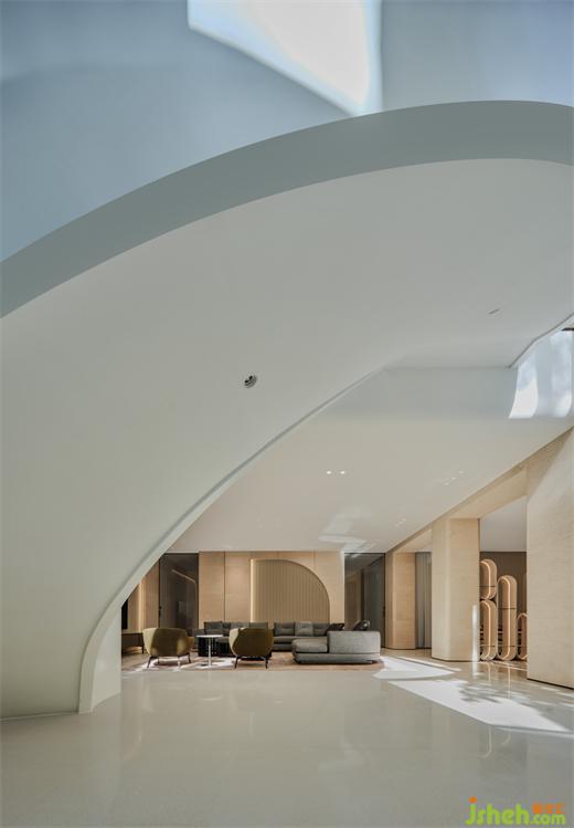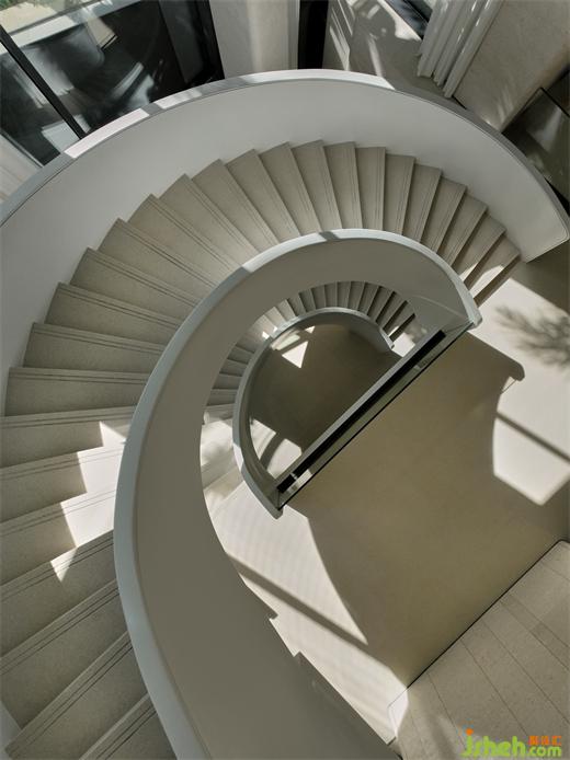 旋轉(zhuǎn)樓梯以一種流動的動勢固化在空間中,其線條隨著光線的舞動而繪出變幻的光影剪影,如同雕塑般地存在,像一件藝術(shù)品,讓人們在行走中感受到空間的流動與變化,賦予室內(nèi)空間一種可以觸摸到的動態(tài)美。