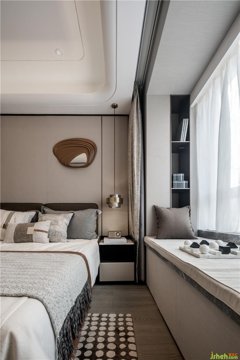 像是沉入進(jìn)空間的感覺,如水一樣平靜、自由,又具生活品質(zhì),樣板房設(shè)計(jì)大大的飄窗帶來豐富的視覺享受,在最好的視野之上,將陽(yáng)光請(qǐng)進(jìn)來,,在大面積的留白上,增加了一抹暖調(diào),營(yíng)造出溫馨又舒適的生活感