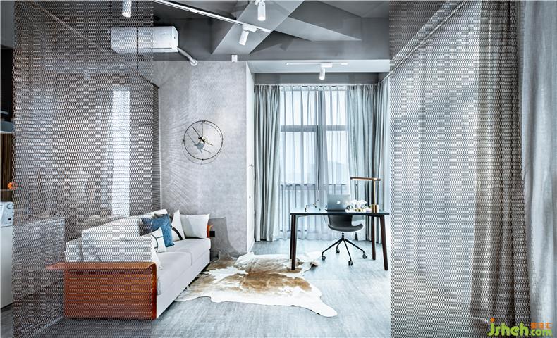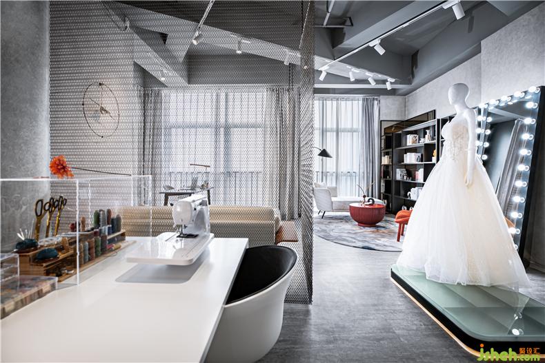 二層是夾層的攝影主題,搭建后的空間比較窄小,樓梯欄桿是主要的立面隔斷,為盡量減少壓抑感,必然要選擇通透的材料,玻璃與網(wǎng)格都是滿足的選擇,但玻璃透光卻不透風(fēng),且商業(yè)空間人流量大,損耗高,室內(nèi)設(shè)計(jì)師玻璃的安全性與實(shí)用性不如網(wǎng)格,于是最后選擇了搭建鋼結(jié)構(gòu)相通的鋼網(wǎng)隔斷,相呼應(yīng)的,樓下的區(qū)域隔斷也延用了鋼網(wǎng),隔而未隔,趣味與功能一體