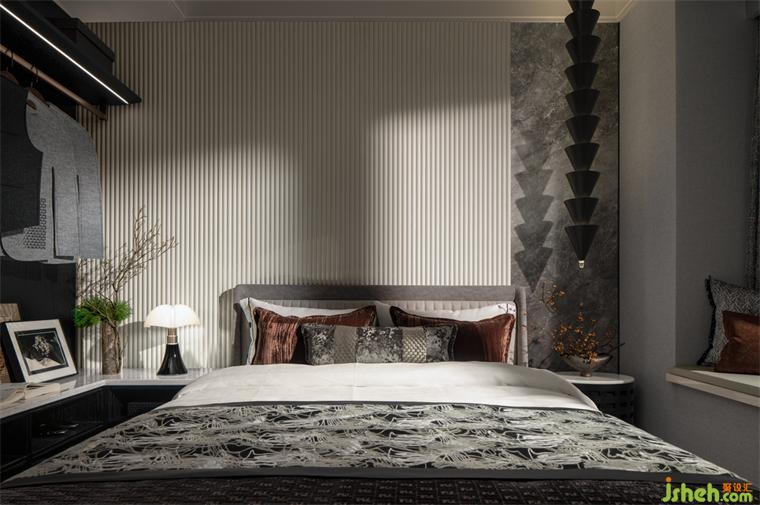 空間中的擺件與掛畫處于有機(jī)呼應(yīng)共鳴的狀態(tài),觀賞植物、茶具、古籍、藝術(shù)臻品等使得東方雅語境在此空間有跡可循,舒適雅致的品味居所也由此構(gòu)造?!皻v經(jīng)千翻浮沉事,方知人間煙火珍。”告別精彩而忙碌的年輕劇場(chǎng),回歸身心靈的愜意休憩,樣板房設(shè)計(jì)感知生活下半場(chǎng)的慢精彩,關(guān)于對(duì)生命的體驗(yàn)返璞歸真,回歸質(zhì)樸。