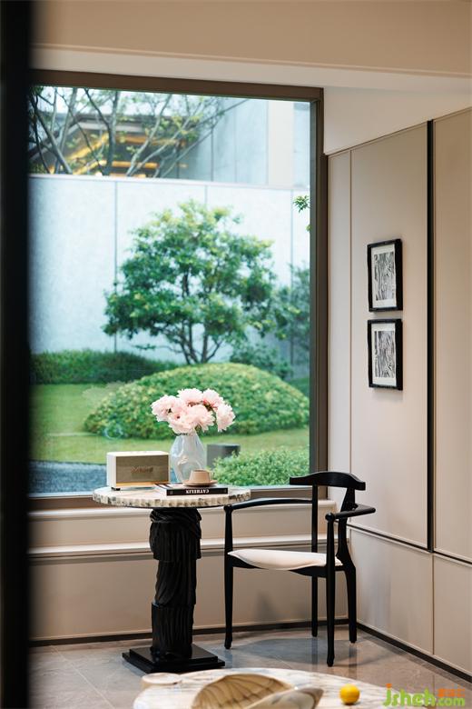 家的每一個角落都能擁有獨處靜思的安穩(wěn)時刻,黑色為空間增添深邃的層次感,綠波蕩漾,每一次望向窗外都是詩與遠方。