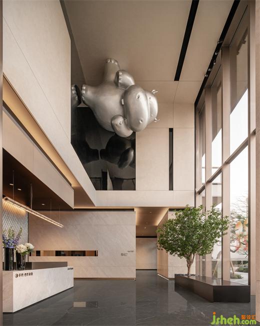 揮手打招呼的姿勢(shì)吸引每位參觀者的互動(dòng),在米色空間里更顯親近柔和。