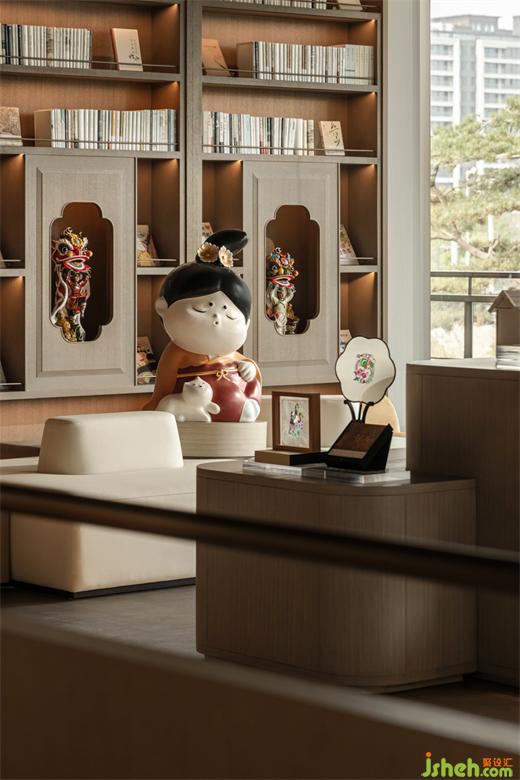 營銷中心設(shè)計以唐人宮樂圖為靈感由來,引用“唐朝胖妞兒”的形象元素,融入展示區(qū)為形象雕塑展示,在趣味形象下,打造寓教于樂的生活社區(qū),進(jìn)而描繪出一位唐宮娃娃進(jìn)入書院學(xué)習(xí)娛樂的場景。