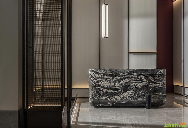 空間序列感十足,一抹光影映射于空間中,一分莊嚴(yán)的神性近在遲尺。大膽的紅綠配色和金屬屏風(fēng)的運(yùn)用,售樓處設(shè)計(jì)讓空間充滿了當(dāng)代生活場(chǎng)景的時(shí)尚氣息。東方寫意與西方摩登的共生,觸覺品質(zhì)和感官張力里呈現(xiàn)新世代氣質(zhì)和生活方式。