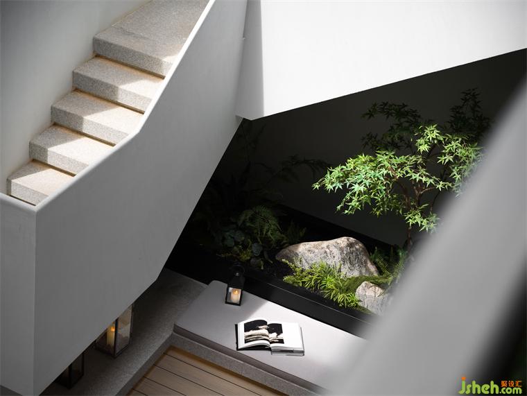 從白盒子建筑構(gòu)體中尋求靈感,安穩(wěn)靜謐的白色體塊,綠意盎然的植物,帶來力量的爐火,一起構(gòu)筑了純粹自然的時空。