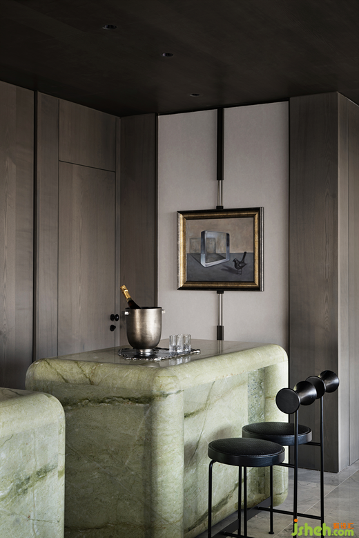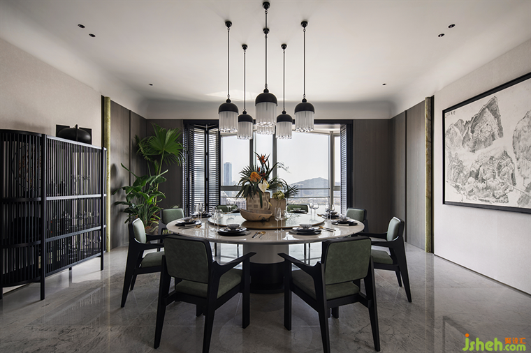 設(shè)計(jì)元素不應(yīng)該被封閉或受到限制,它們應(yīng)該以堅(jiān)定不移的歸屬感,迎接并喚醒人的靈魂。在WSD 的設(shè)計(jì)中,多元探索和無限變化隨處可見,而開創(chuàng)的設(shè)計(jì)更體現(xiàn)在彷佛玉石翠綠般的石材用于埡口之中,嶺南建筑的鑊耳元素幻化成裝飾畫,樣板間設(shè)計(jì)突破原有的邊界,用新的形態(tài)講述新的故事。