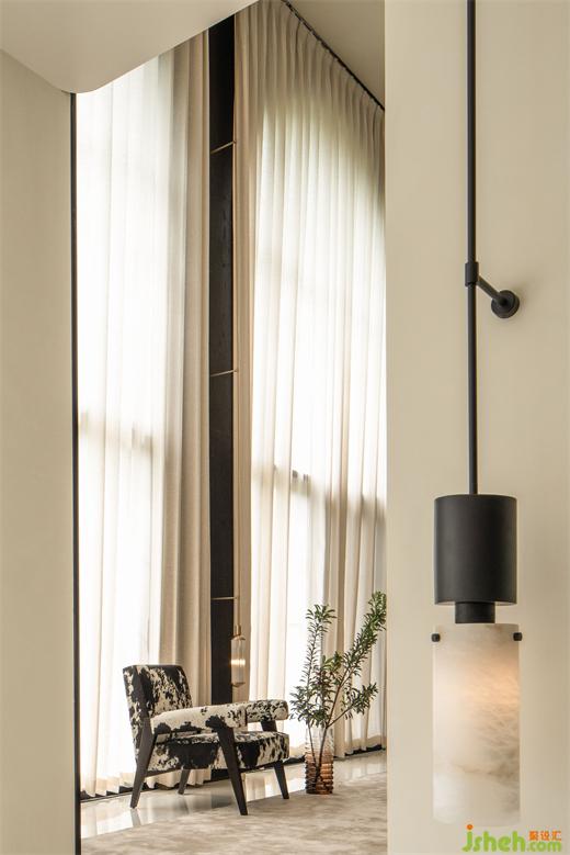 別墅設(shè)計(jì)客廳大面的落地窗,陽(yáng)光毫不客氣地跑向室內(nèi),馬毛單椅和羊毛地毯的溫度漸漸攀升,沿著肌膚將溫暖傳遞,直至包裹住人的身體。當(dāng)然,風(fēng)也是毫不意外地,跟人抱個(gè)滿(mǎn)懷。