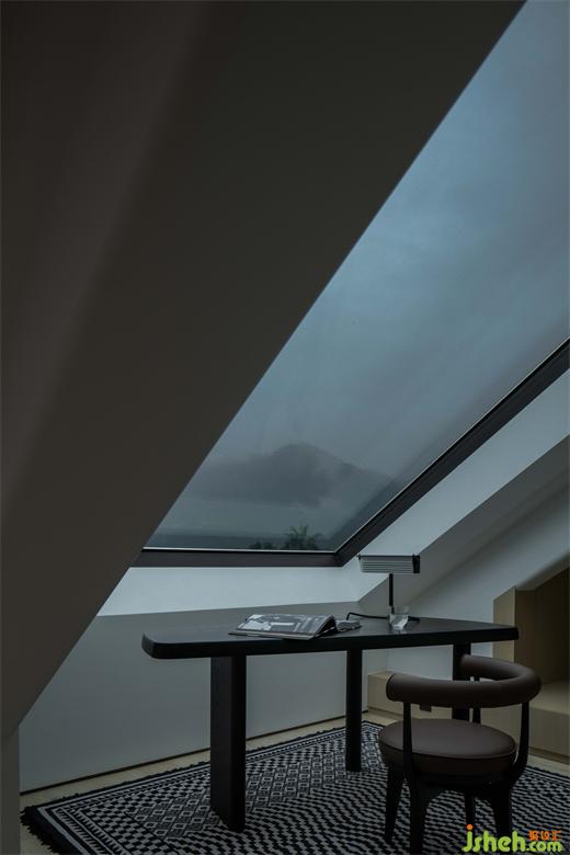 當(dāng)初選擇這里,也是因?yàn)檫@里靠近山水又視線開(kāi)闊。雨天和晴天都有不一樣的感受,雨天的話我最喜歡待在這個(gè)茶室里,能看到外面的花園和遠(yuǎn)處的山,花園做了一個(gè)無(wú)邊的水景,一到下雨的時(shí)候,聽(tīng)著外面淅淅瀝瀝的雨聲,看著煙雨繚繞的遠(yuǎn)山,特別讓人安靜和舒服?!?-紅姐在訪談中如是說(shuō)道。
