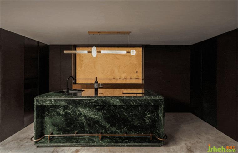 紅姐的個人喜好之一是愛酒,生活習(xí)慣也是想可以隨時品上一杯紅酒,因此在做設(shè)計的時候,每一層生活空間都會考慮這一生活需求。無論是吧臺還是影音室,亦或是休閑室:都有這么一寸天地滿足這飲酒樂事。