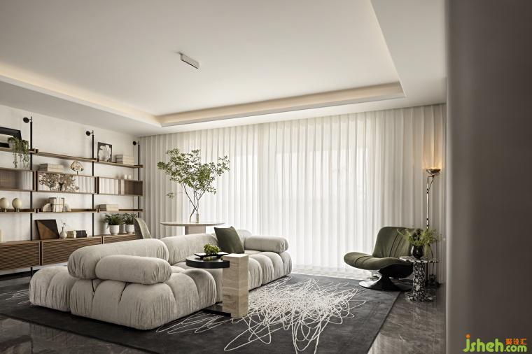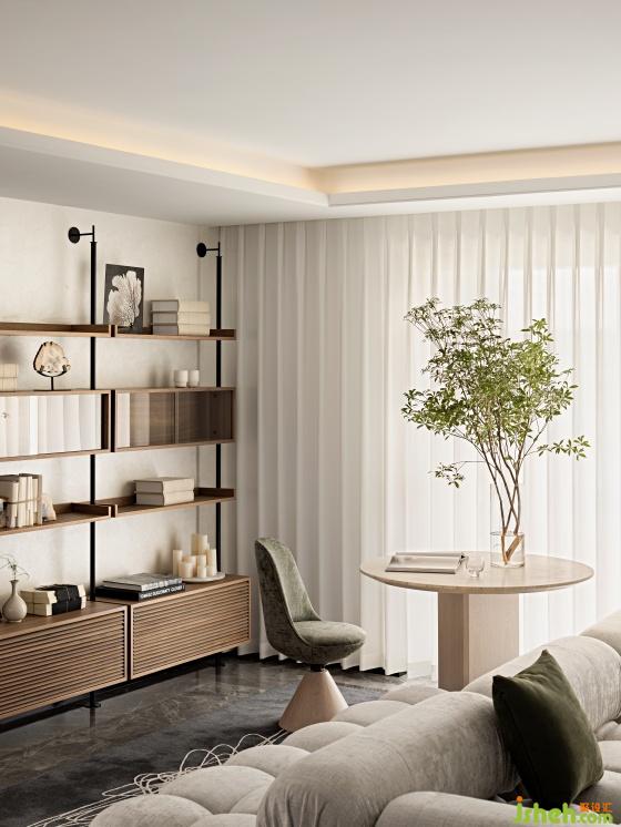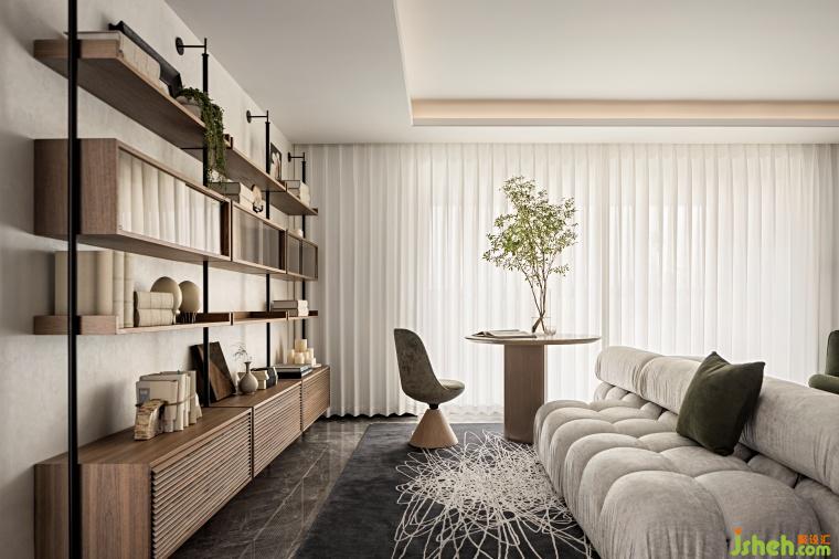 每一種場景都在激活與釋放使用者的情緒,我們模擬出生活中的“微時刻”運用生活場景,構(gòu)想未來生活方式。考慮到孩子的教育問題,客廳設(shè)置了移動的讀書區(qū),同時沙發(fā)選用了雙面款式,自由且充滿趣味。他們不希望自己的孩子過早便沉迷網(wǎng)絡(luò)世界因此客廳的電視機特意設(shè)計成移動式。