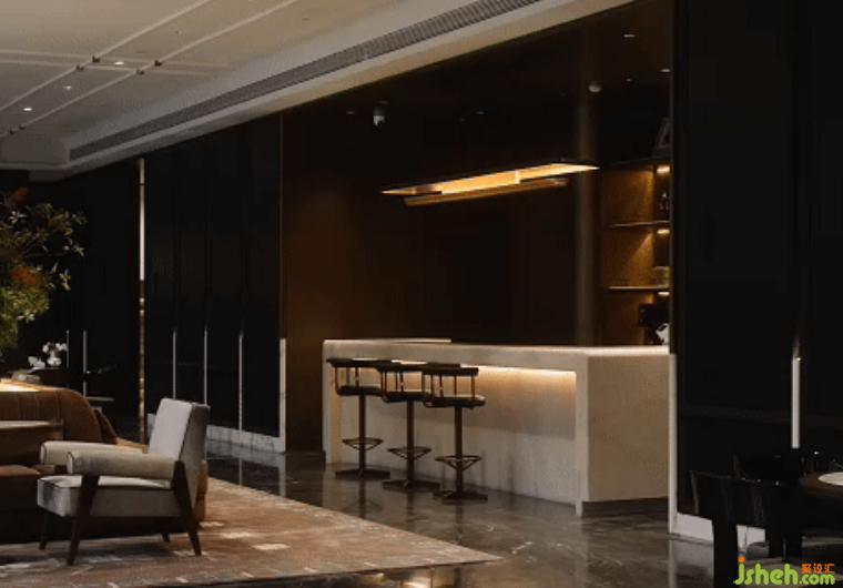設(shè)計介于文化和自然之間進行敘事,中性色為主調(diào),黑金色和翡翠綠則生動演繹海派的細膩情愫。