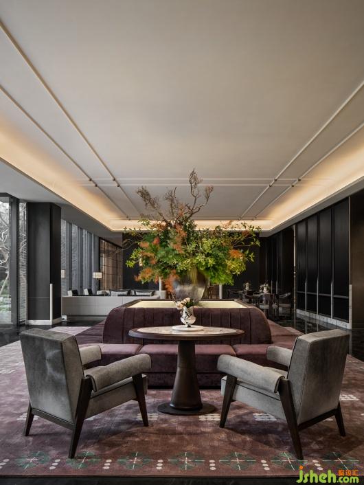 會所設(shè)計回應(yīng)對經(jīng)典時代的懷念,善于運用各種復(fù)古元素,同時選擇簡約的配飾來平衡空間的復(fù)古感,使其更加符合現(xiàn)代人的審美需求。