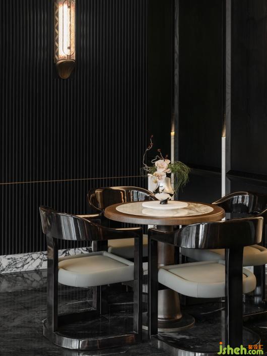 會所設(shè)計從顏色符號到形制元素,進行多元的解構(gòu)和重組,局部點綴金屬細節(jié),將摩登海派和現(xiàn)代都市的藝術(shù)融合完美表達。
